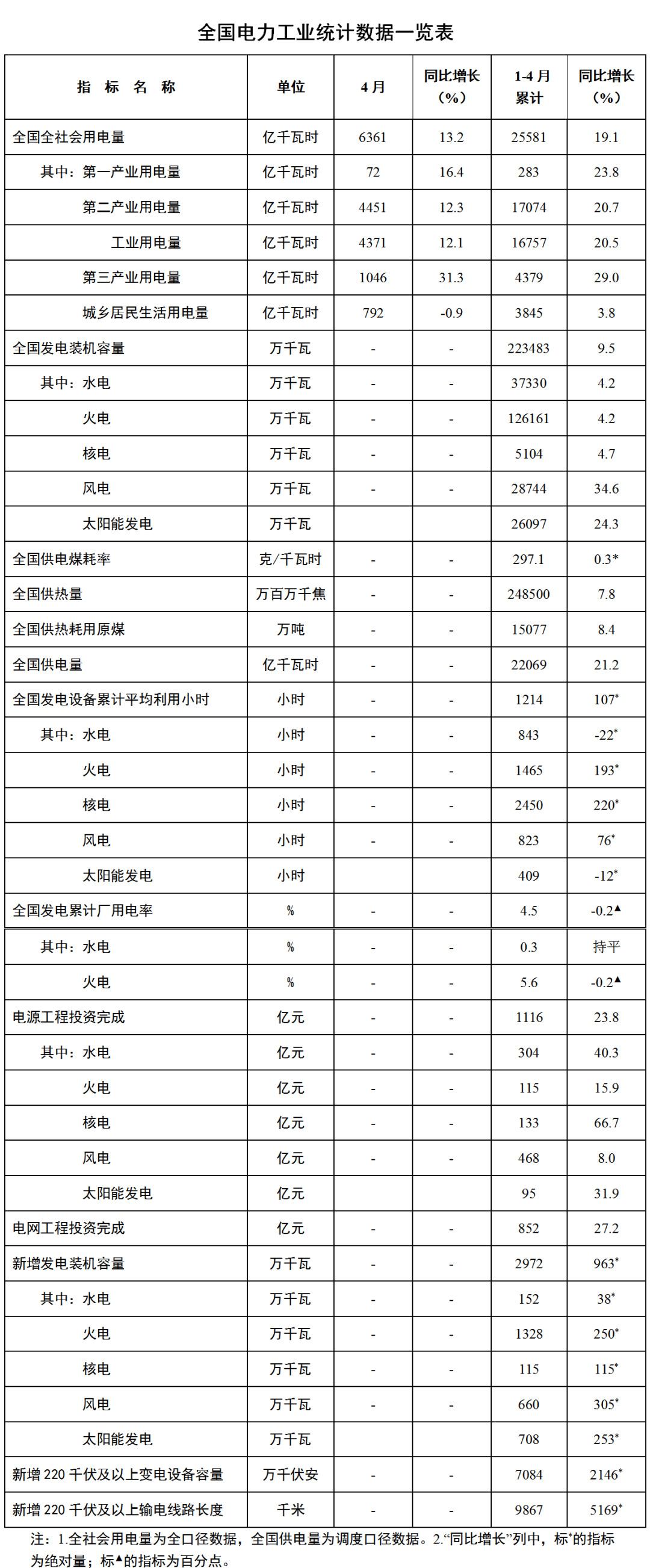 國家能源局發(fā)布1-4月份全國電力工業(yè)統(tǒng)計數(shù)據(jù)