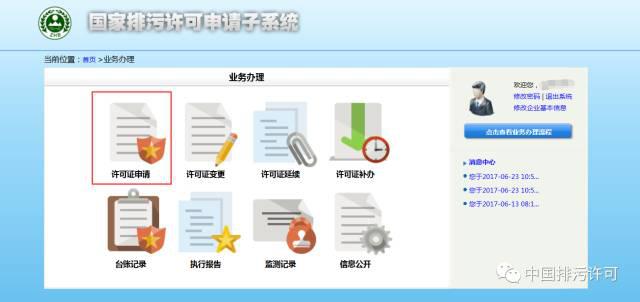 第一步:登錄排污許可申請子系統(tǒng),進入申請模塊: