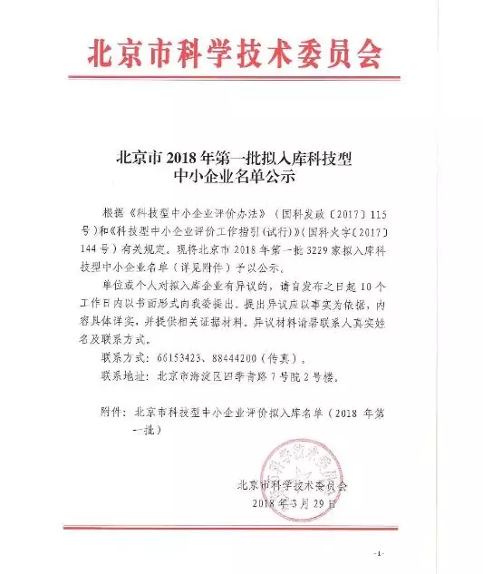 近日,北京市科技技術委員會公示了北京市2018年第一批擬入庫科技型中小企業名單。其中,中科宇杰以其自主研發的核心技術實力,穩定的產品品質,良好的售后服務,誠實的公司信譽,成功榮獲該項榮譽??!